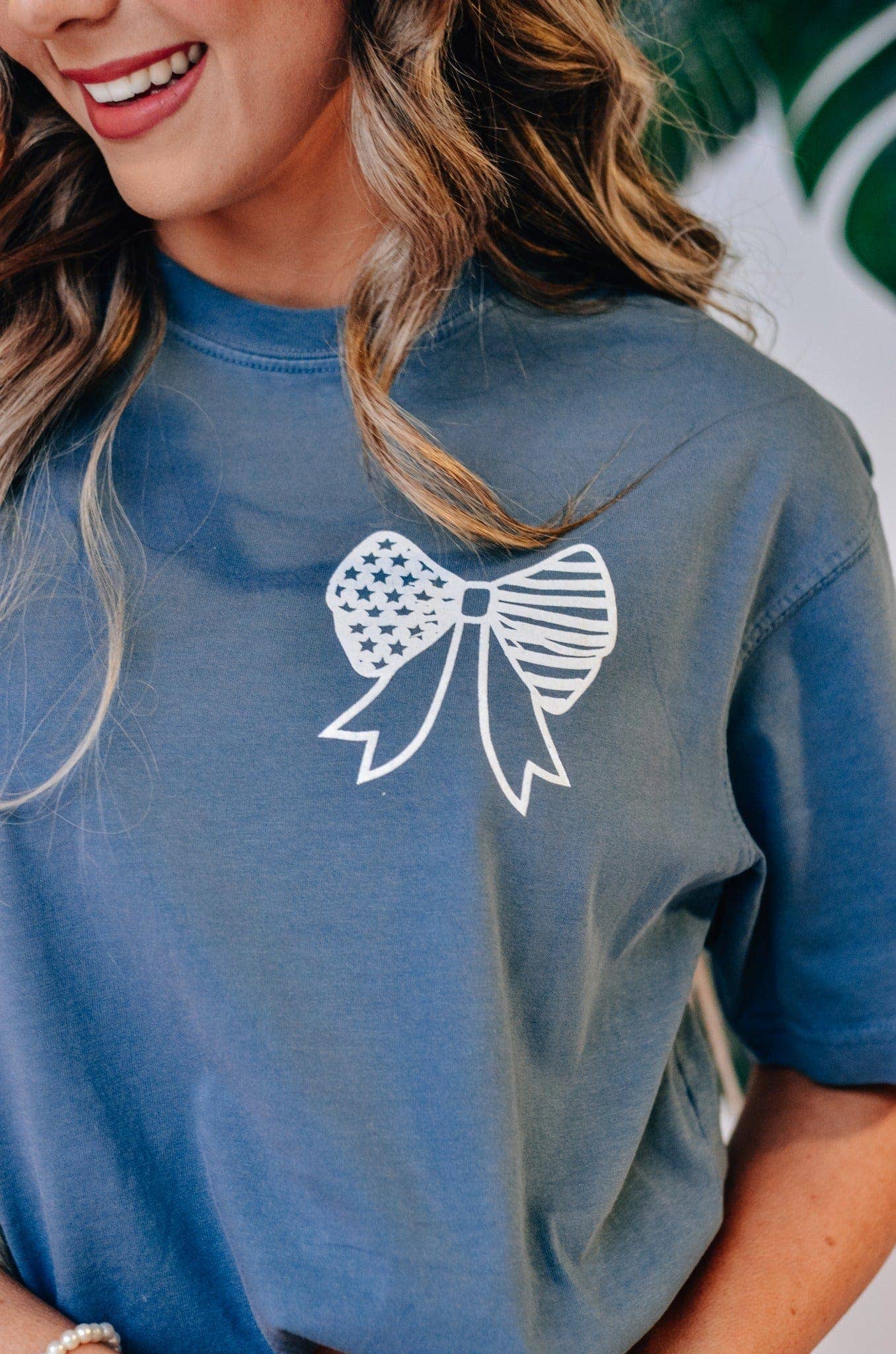 "God Bless America" bow tee. Add a pop of girly or a dash of country whichever your vibe!